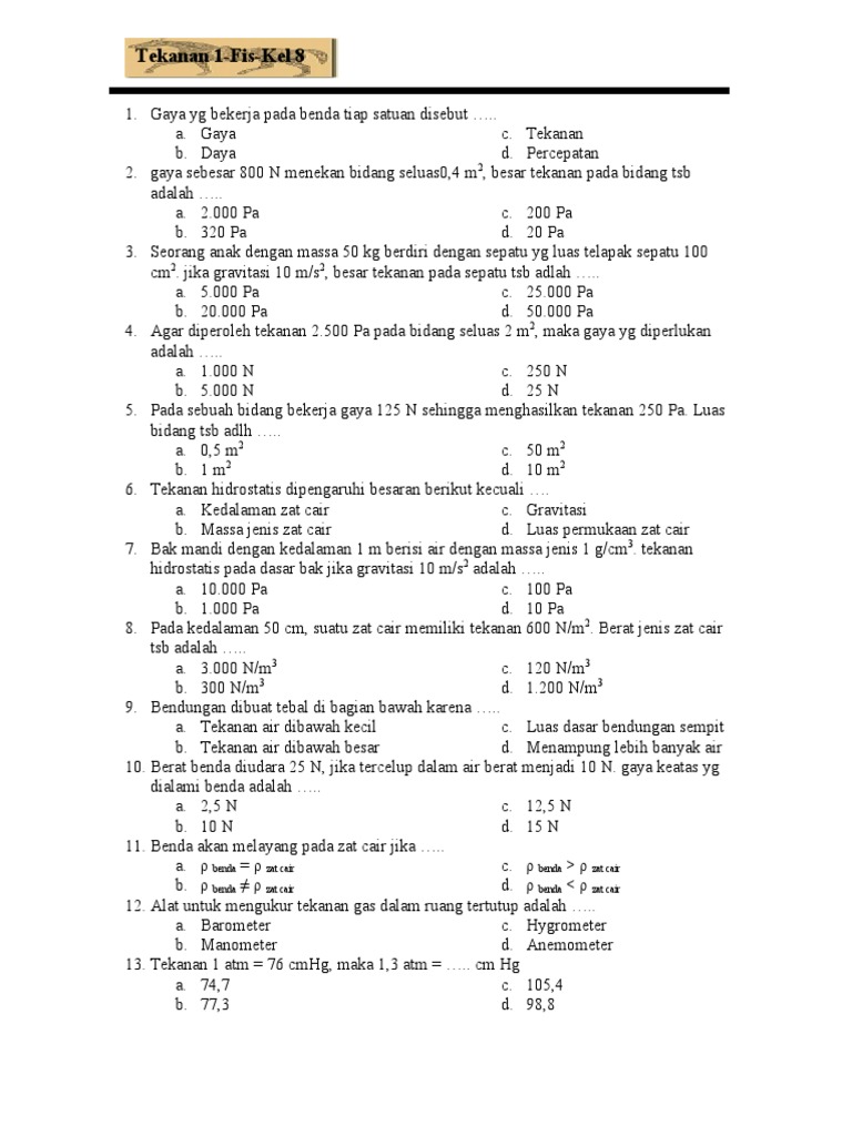 Soal Fisika Kelas 9 Pdf. Fisika seringkali ditakuti oleh para siswa, padahal bersama dengan sanggup mengetahui rancangan fisika, maka siswa dapat bisa mengerjakan bersama mudah. Soal-soal yang diberikan di situs ini, bisa untuk latihan siswa sebelum saat bakal mengerjakan ujian. Karena kunci paham fisika adalah bersama sering berlatih mengerjakan soal.